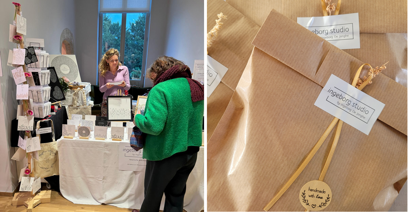 Ook dit jaar werd ik als maker geselecteerd bij Lokaal Boetiek, een beurs van en met Belgische makers. Nieuwe items zoals originele onderzetters en praktische botanische tassen nam ik ook mee. Iets creëren, ontwerpen, illustreren, dichten en met veel gevoel uitdragen, dat is mijn passie.